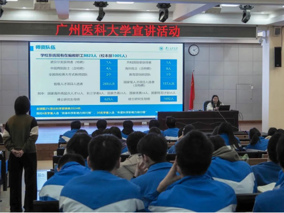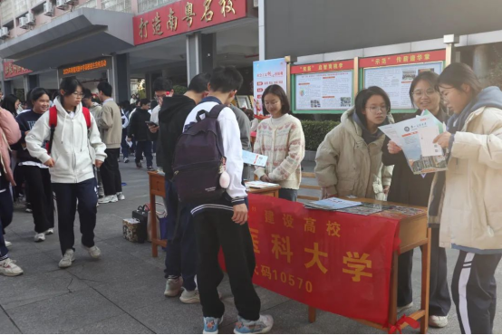 于2025年寒假期间精心组织了11支学生志愿招生宣传服务队,奔赴广州市白云区及河源市多所中学母校,开展了一系列丰富多彩的招生宣传活动,将广医的温暖与魅力传递给更多学子。