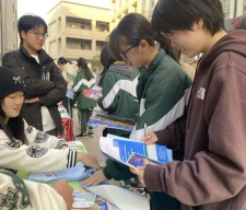 河源高级中学小队采用摆摊宣讲的形式,精心准备了互动环节及广医文创纪念品,吸引了众多同学前来咨询。通过生动的讲解与互动,他们让同学们对银河