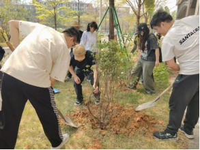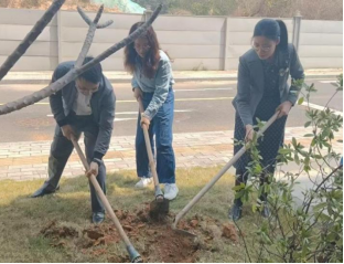 在老师们的带领下,队伍分工明确,配合默契。大家齐心协力,将一株株小树苗从紫荆山搬至立信苑宿舍周边的种植区。