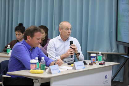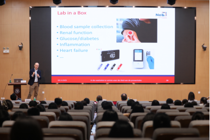 在番禺校区学术交流中心302报告厅举行了隆重的客座教授聘任仪式及专题讲座,为数字健康和慢性病照护领域知名学者Niels Chavannes、Douwe Atsma颁发客座教授聘书。随后,Niels Chavannes教授以“Principles of evidence-based eHealth”为讲座主题,系统解析了循证数字健康核心原则,结合荷兰莱顿大学医学中心全球电子健康工程实验室数字健康项目成果与经验,提出数字健康临床转化路径。Douwe Atsma教授就“Redesigning Health Care- Connecting Care”,系统阐释了可穿戴设备在慢性病患者健康管理中的创新应用,通过实时监测数据优化行为干预,构建基于数字技术的连续性健康服务新范式。代获获博士则分享了实验室运行机制,探讨了国际数字健康合作研究中的共性挑战与解决方案。来自银河