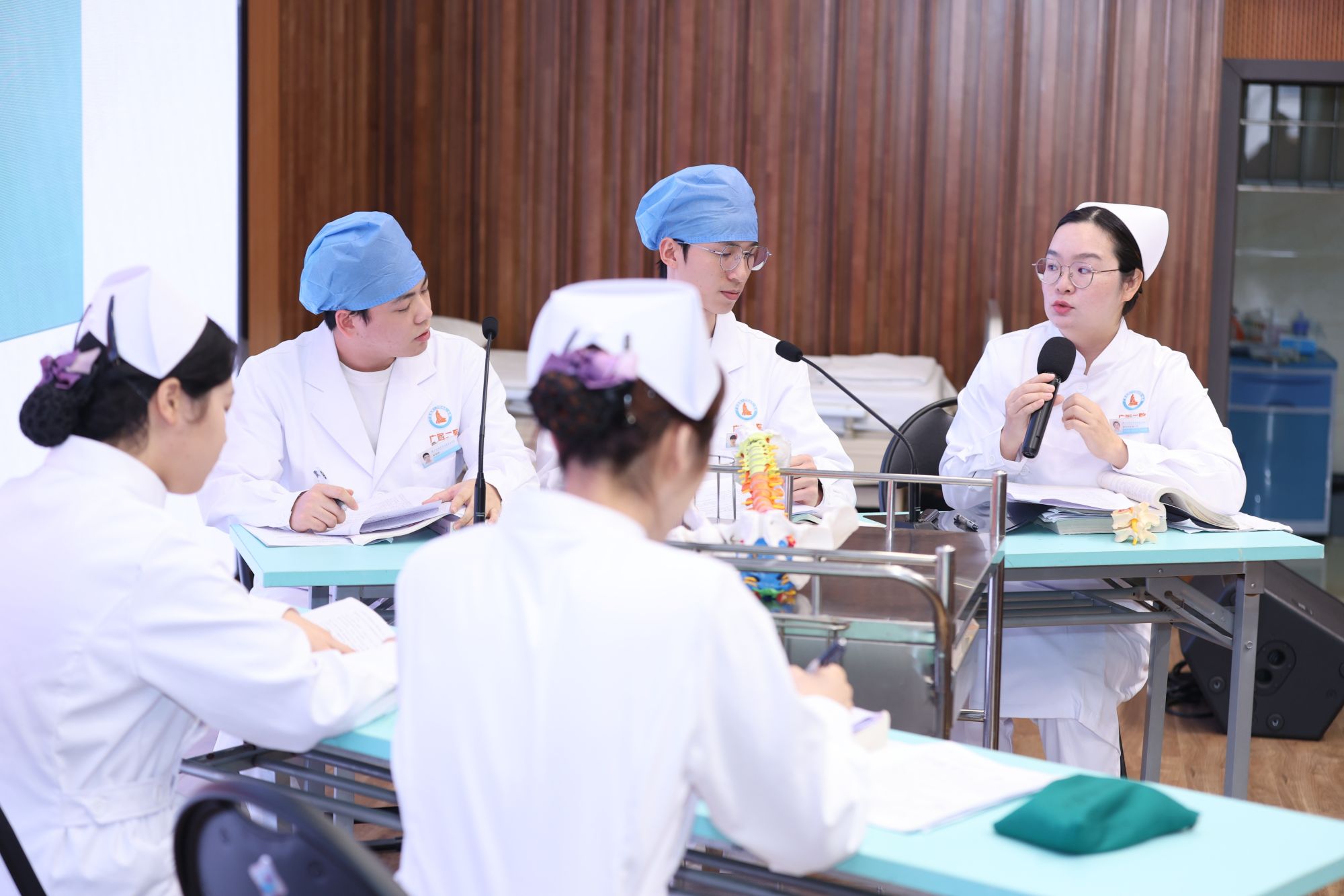 为强化教学实操能力,培训还设置了示范与研讨环节。附属第一医院、第二医院及第三医院的护理教学团队分别就临床护理查房、临床护理病例讨论及临床护理小课进行了规范、生动的教学示范,直观展示了三类教学活动的组织技巧与实施要点。现场互动热烈,交流深入。