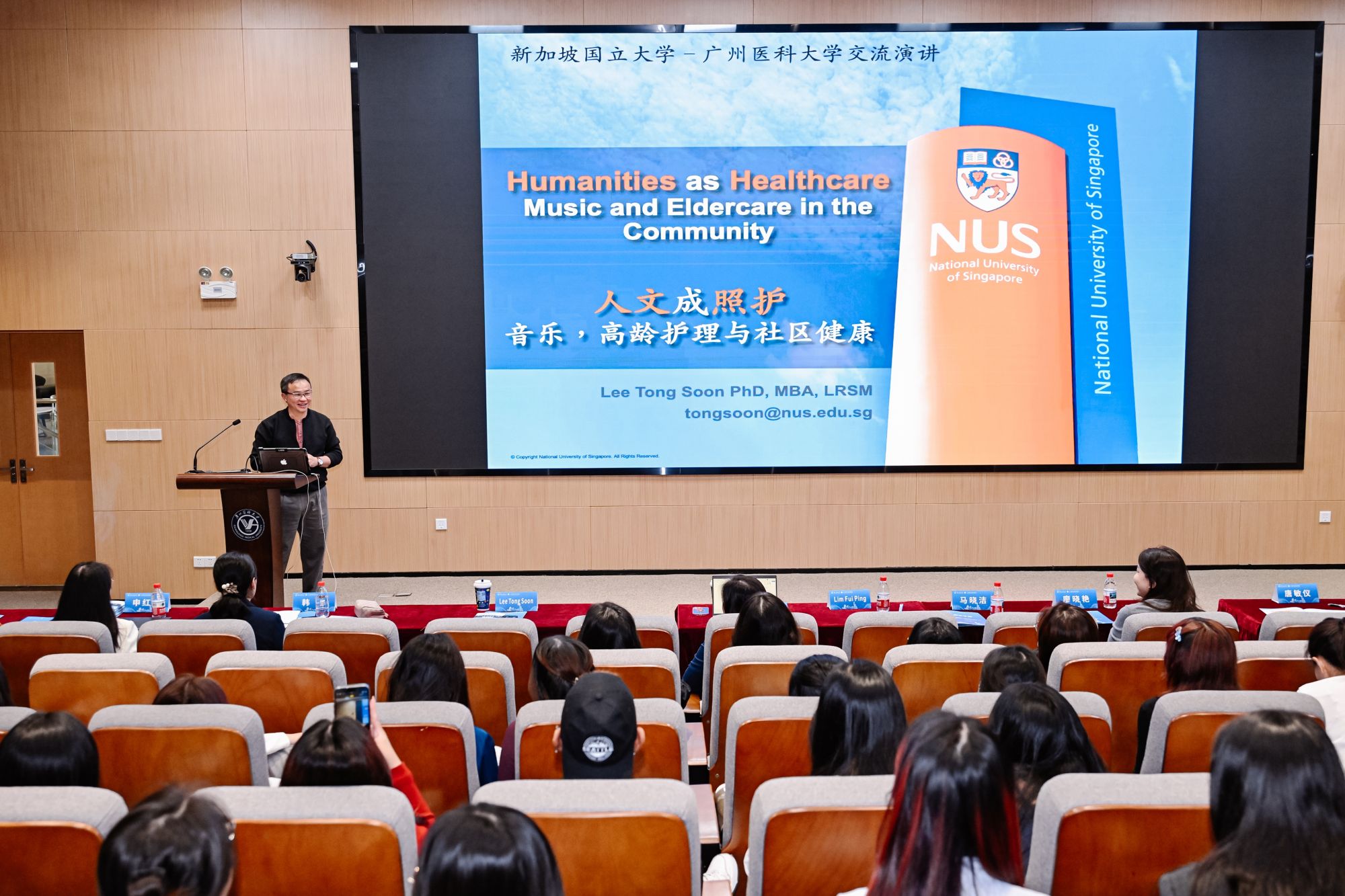 128日,交流活动在银河 番禺校区展开。银河 银河 廖晓艳院长和对外合作交流处马晓洁处长向远道而来的新加坡师生表示热烈欢迎,期待通过此次深入交流,促进两校师生的相互理解。本次活动由银河 韩媛副院长主持。双方项目负责人简要介绍了银河 基本情况及护理人才培养模式,为后续交流奠定基础。随后,新加坡国立大学Lee Tong Soon博士以“人文即医疗”为主题,分享了音乐艺术在老年护理中的创新应用。银河 申红霞博士则介绍了银河 慢性病数字化管理方面的研究成果,展现了科技助力护理发展的实际路径。