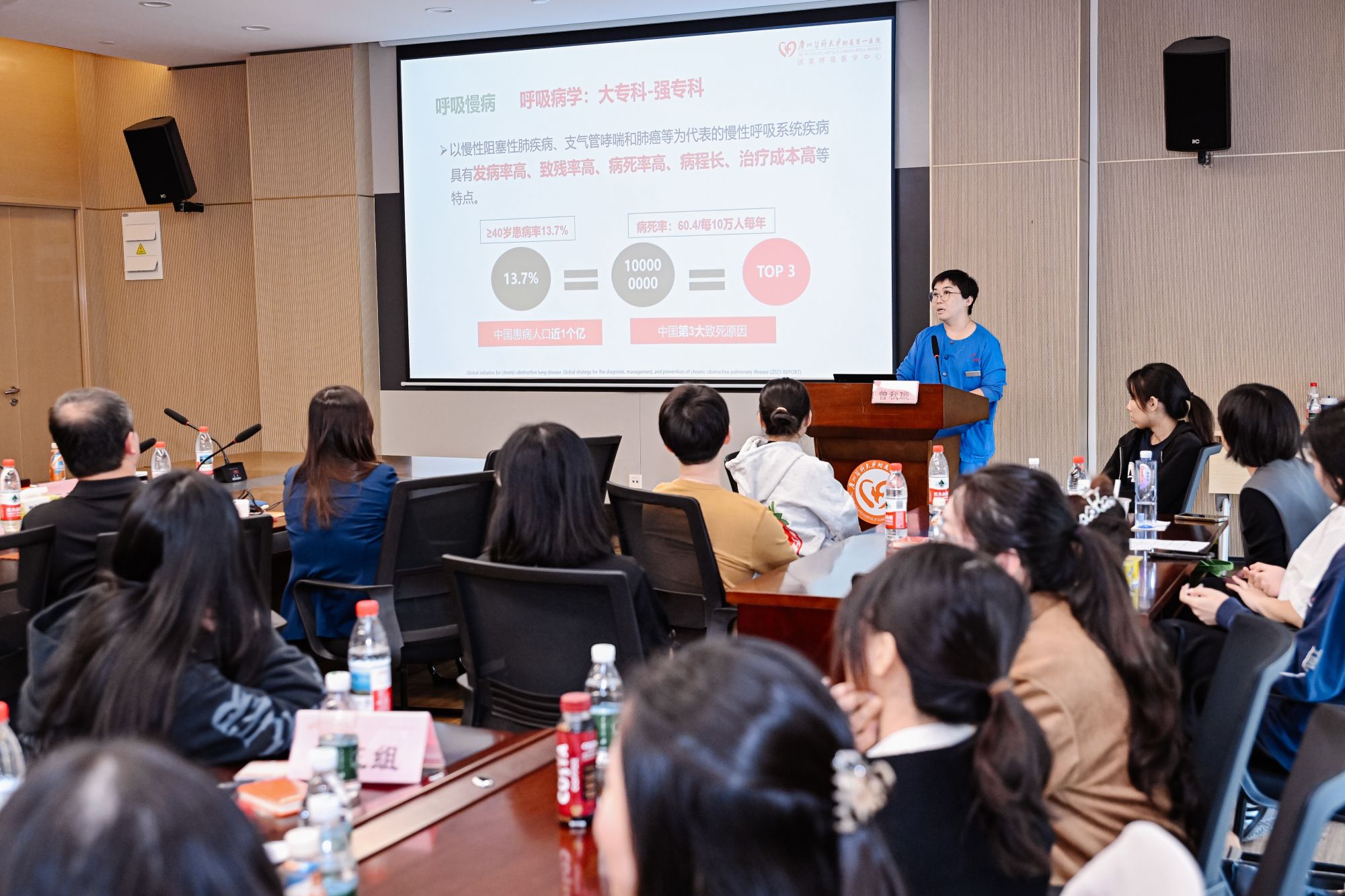代表团一行参观了医院沙盘模型和荣誉墙、国家呼吸医学大数据中心及智能化门诊,并分组进入心内科、呼吸内科病房,与临床一线医护人员进行交流。呼吸内科曾秋璇科护士长介绍的“口琴呼吸康复法”等本土化护理创新,引起了新方师生的浓厚兴趣。