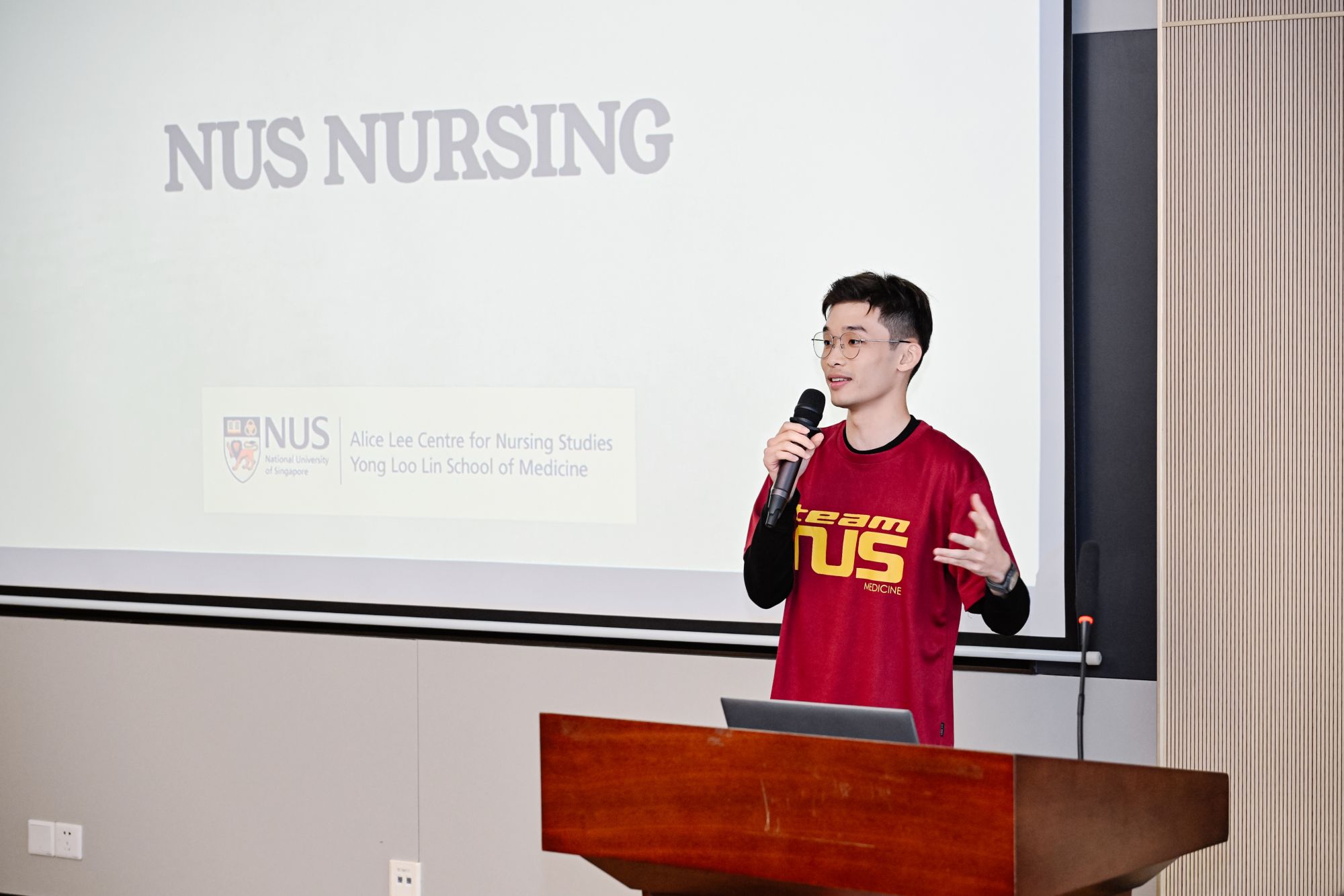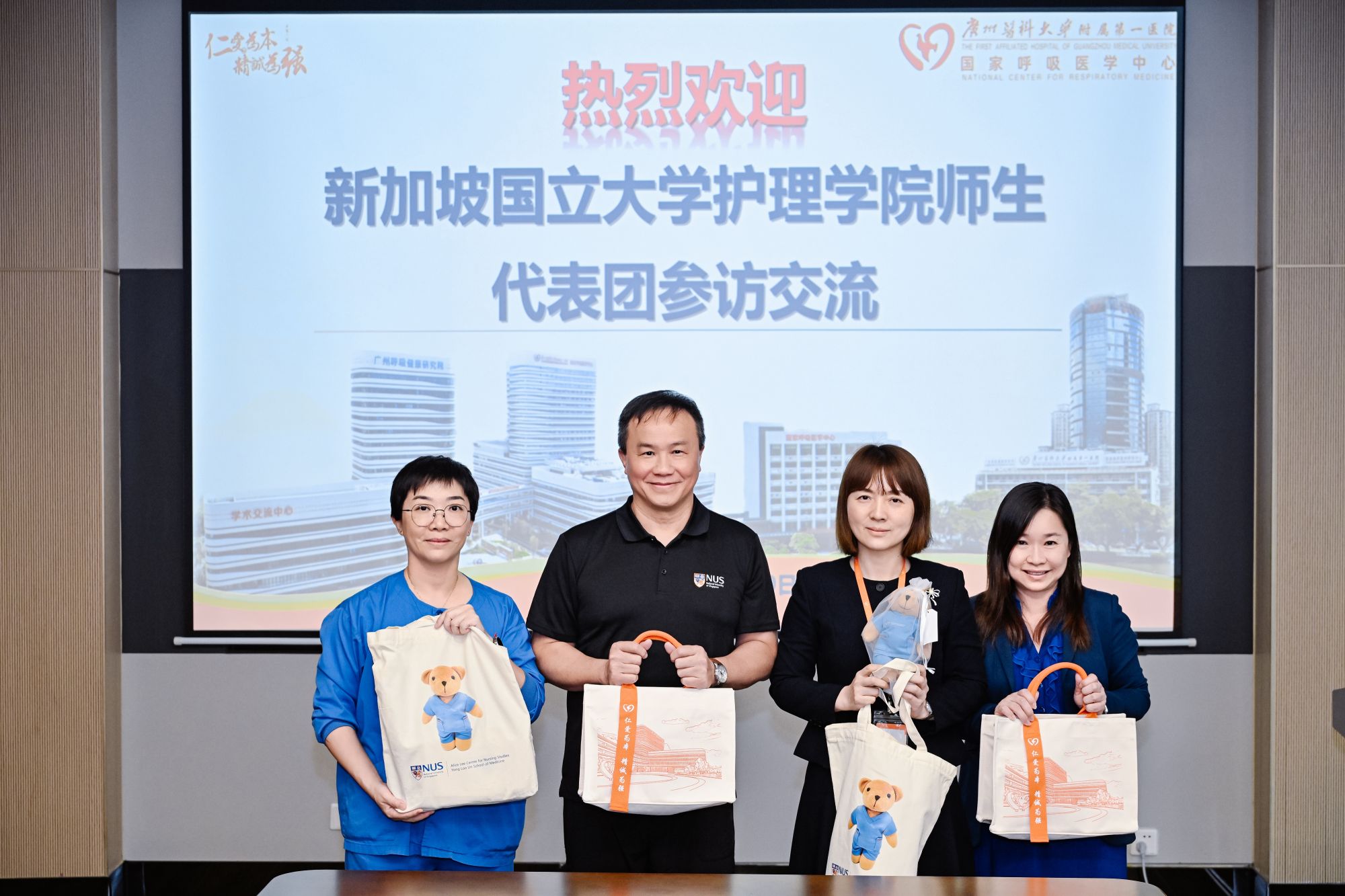 次日,新加坡国立大学师生到银河 附属第一医院国家呼吸医学中心开展临床参访。医院周承志副院长致欢迎辞,简要介绍了医院的整体情况、专科领先优势及护理在推动医疗高质量发展中的核心价值,并期许双方未来能在护理人才培养等领域进一步拓展交流与合作。
