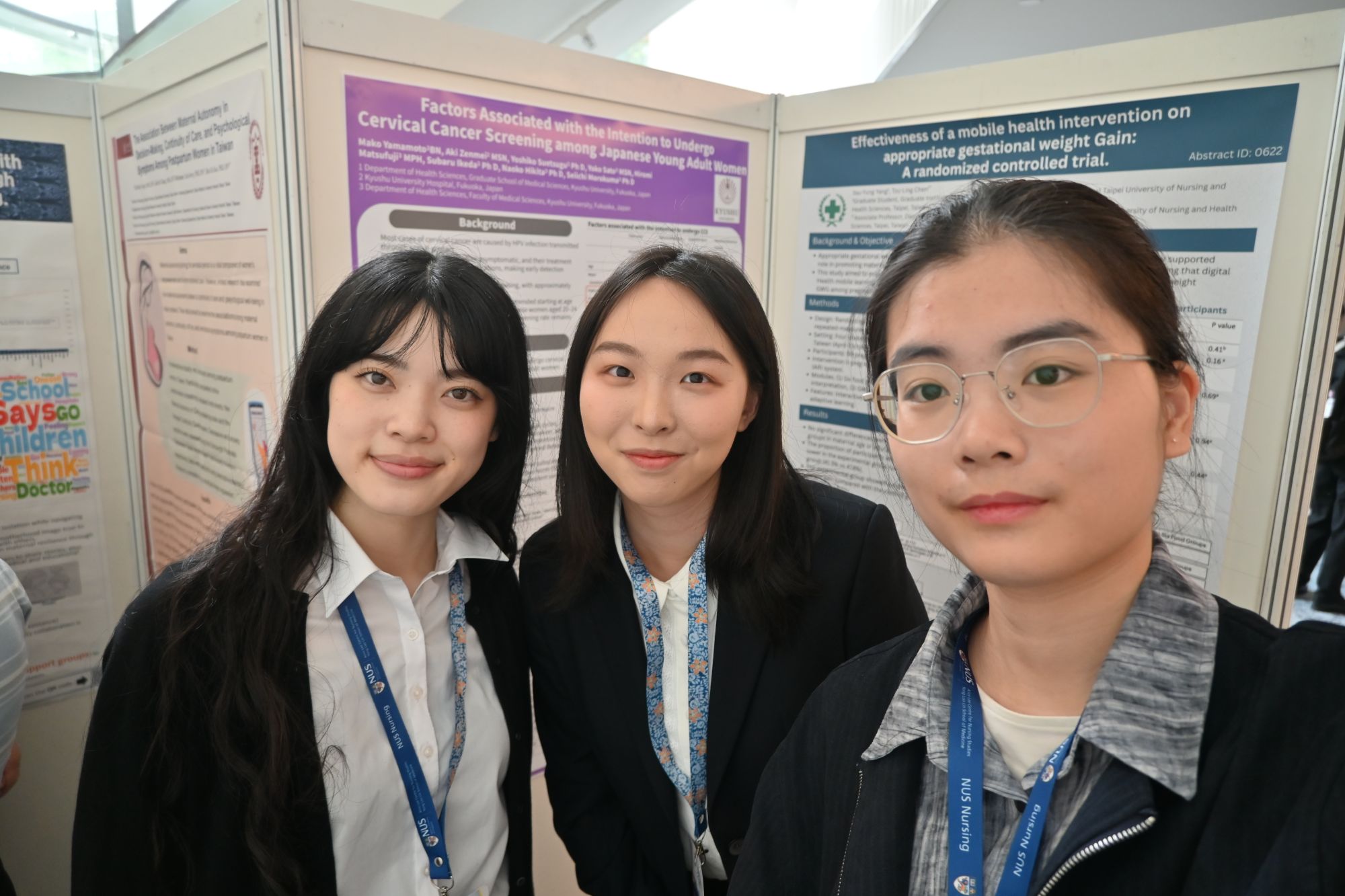 在第二天上午的海报展示区,一位日本学者关于年轻女性宫颈癌筛查意愿的研究引起了两位同学的关注。该研究发现,“筛查意愿”与“结婚意愿”呈显著正相关,而与“想要孩子的意愿”无显著关联。通过探讨,她们推测这可能与研究对象年龄有关:对二十岁出头的女性而言,“结婚”是近阶段的人生规划,而“要孩子”尚属远期规划。